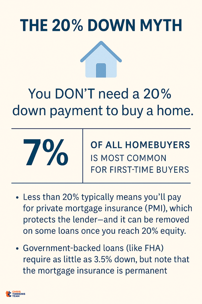 One of the biggest myths in real estate is that you have to put 20% down to buy a home. It’s a misconception that stops so many would-be homeowners from even exploring their options — and it’s simply not true.